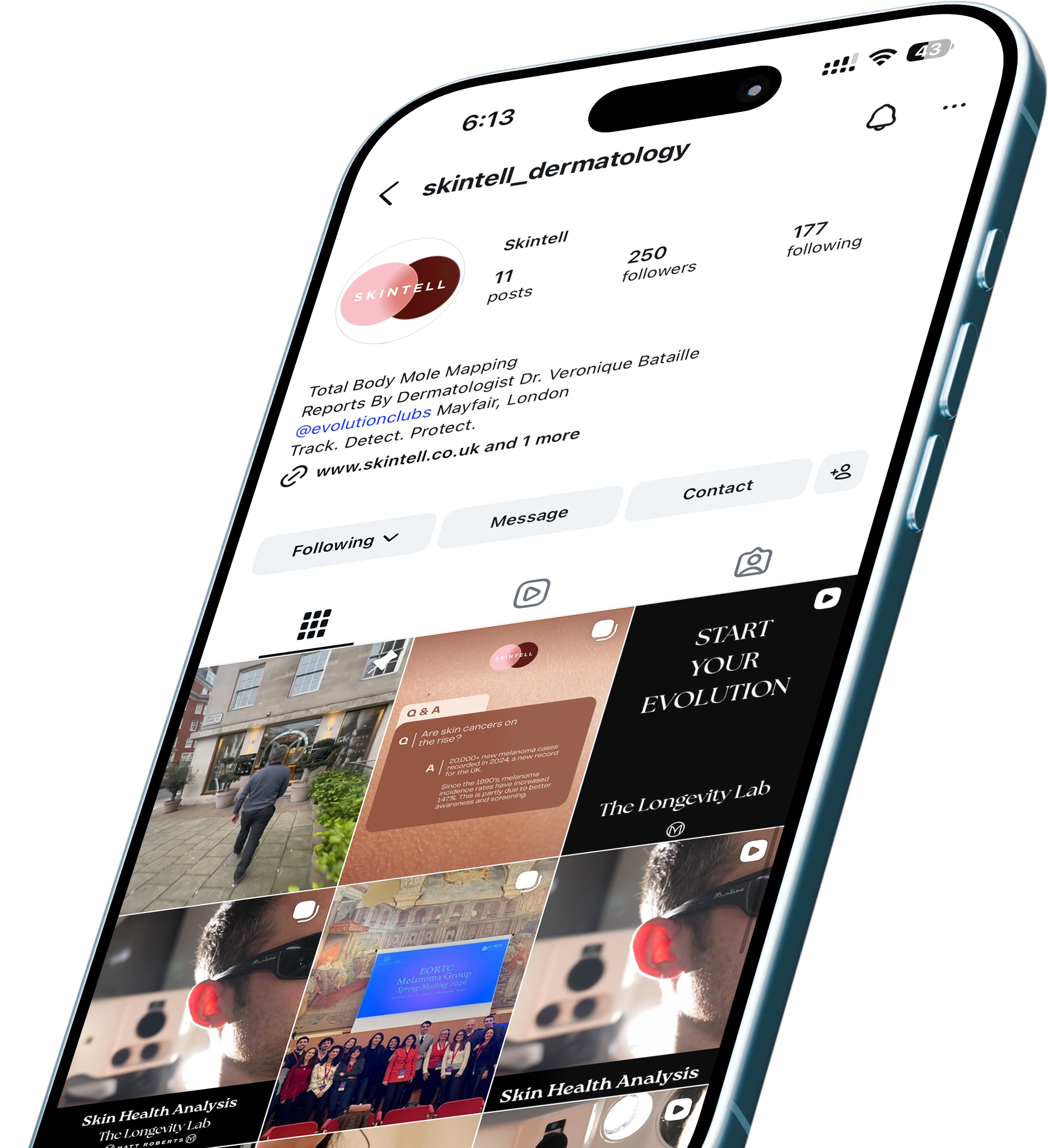 To date, Tom’s work has facilitated the remote triage of over 100,000 skin cancer referrals nationwide. A career highlight includes establishing the South East London Teledermatology Network, an integrated digital triage system for King’s College and Guy’s & St Thomas’ Hospitals serving a population of 2 million. This deep-rooted passion for early detection led him to co-found Skintell, where he utilizes cutting-edge Deviskan technology to offer comprehensive total-body mapping available in London.